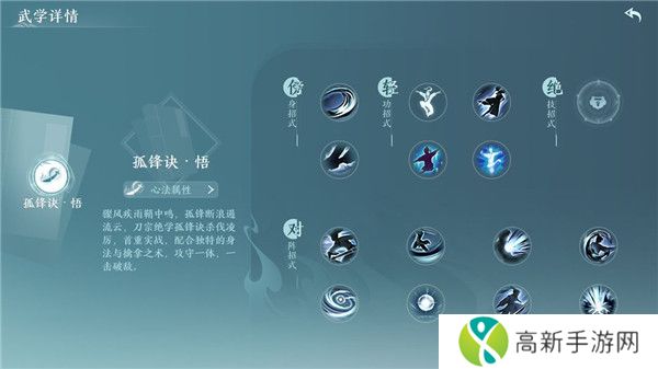 刀宗孤锋诀:外功近战输出,高机动,擅长洞察敌人弱点。