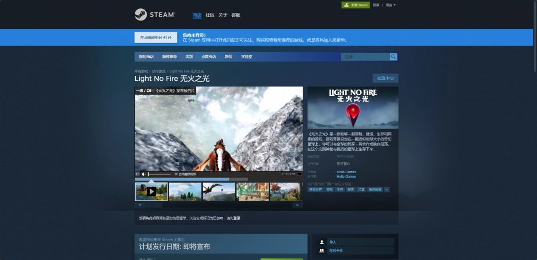 《无火之光》是一款能够一起冒险、建造、生存和探索的游戏,而这款游戏的官网地址就是一个官网页面,另外Steam平台的购买页面也算官网,进入到这个游戏的购买页面基本上就能知道所有这款游戏的信息。