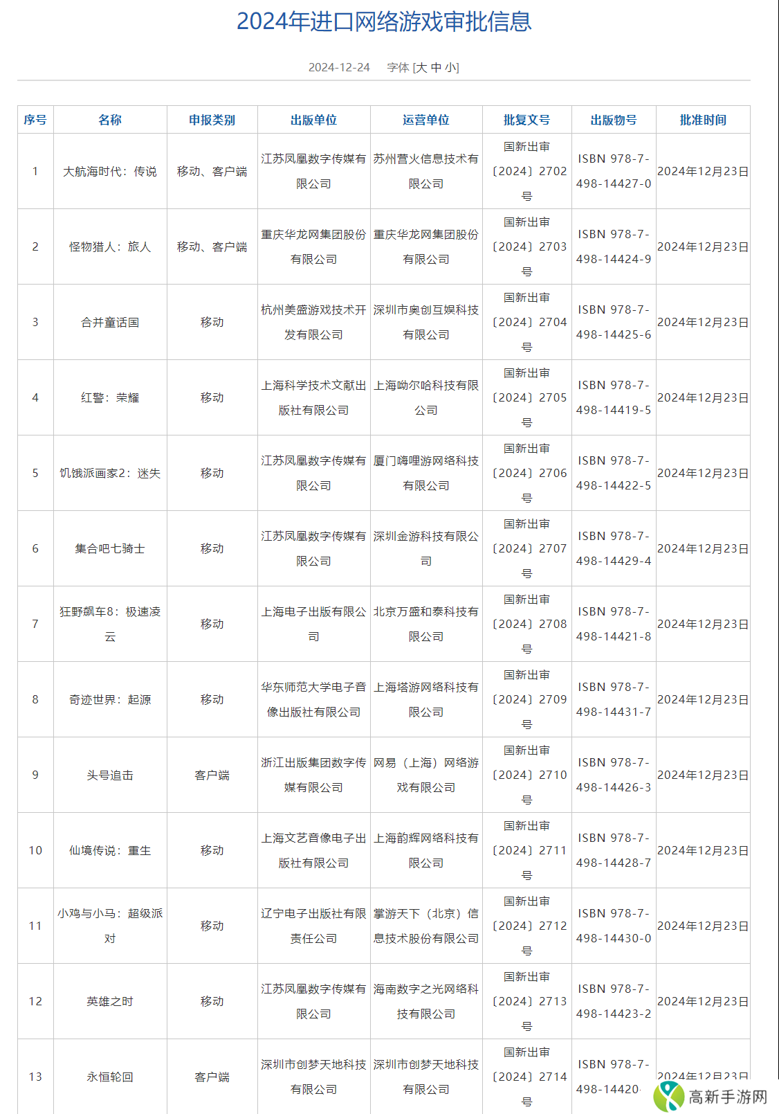 最新12月国产、进口游戏版号已正式发布!让我们一起来看看都有哪些大家期待已久的作品过审吧!