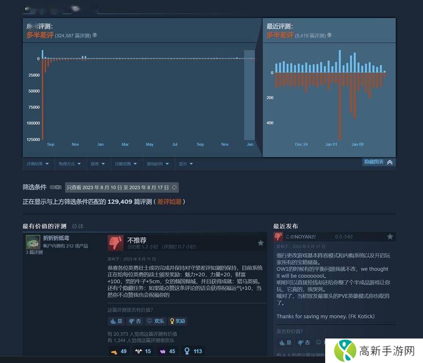 上线Steam初期玩家给《守望先锋2》打出了12万的差评