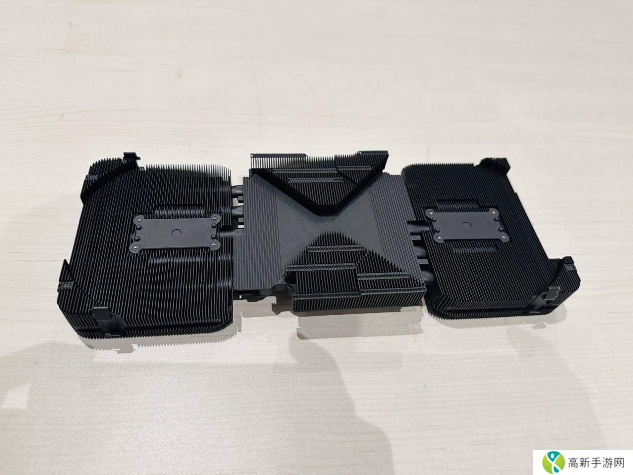 RTX 50系列显卡的散热器设计中,最引人注目的莫过于3D真空腔均热板的运用。这块均热板被巧妙地放置在紧凑的PCB之上,能够迅速将显卡核心、显存以及供电模块产生的热量传导至五根粗壮的热管上,再由热管传递至三块独立的铝制散热鳍片。这一设计极大地提高了热量的传导效率。