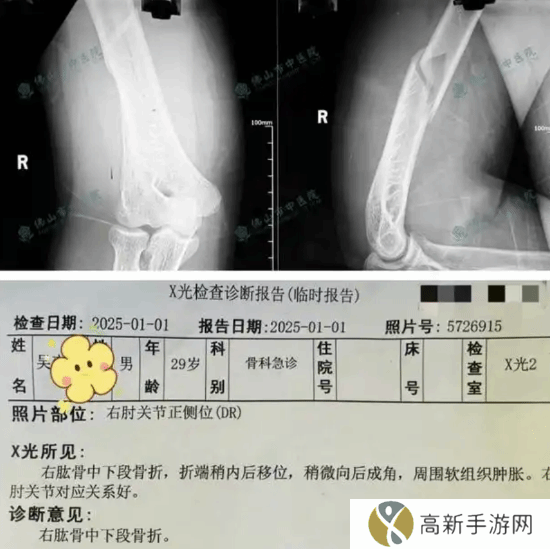 1月9日,佛山市中医院骨科急诊室接诊了两名特殊患者,均因尝试一种名为“扳手腕”的游乐设施而不慎导致肱骨下段骨折。