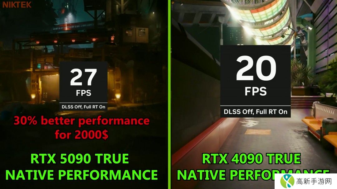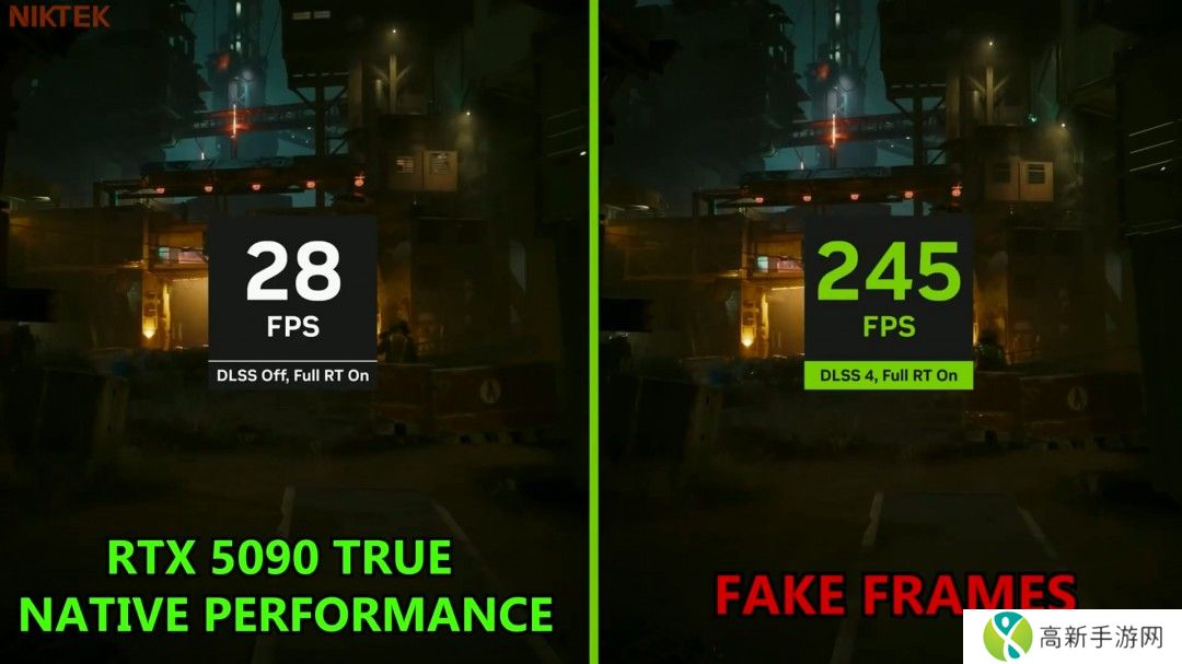 而根据英伟达展示DLSS 4性能的视频,RTX 5090在4K分辨率+开启完整光追条件下,游玩《赛博朋克2077》游戏时,原生帧率仅28帧。在开启DLSS 4后,帧数来到了245FPS,接近提升了9倍。