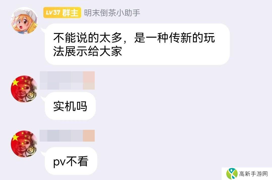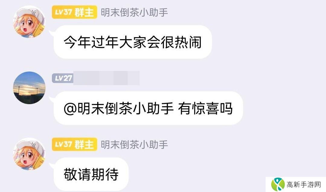 近日《明末》玩家群群主(据说是官方人员)爆料称:“今年过年会很热闹,敬请期待”。有玩家追问细节,他表示:“不能说得太多,是一种全新的玩法展示给大家。”