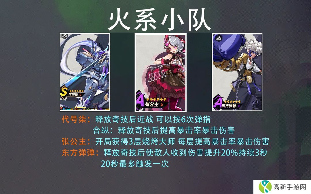开荒阵容可分为风系、火系、雷系和水系小队,具体的搭配见下图。