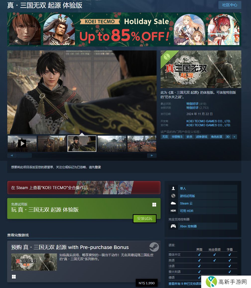 体验版获得玩家“特别好评”