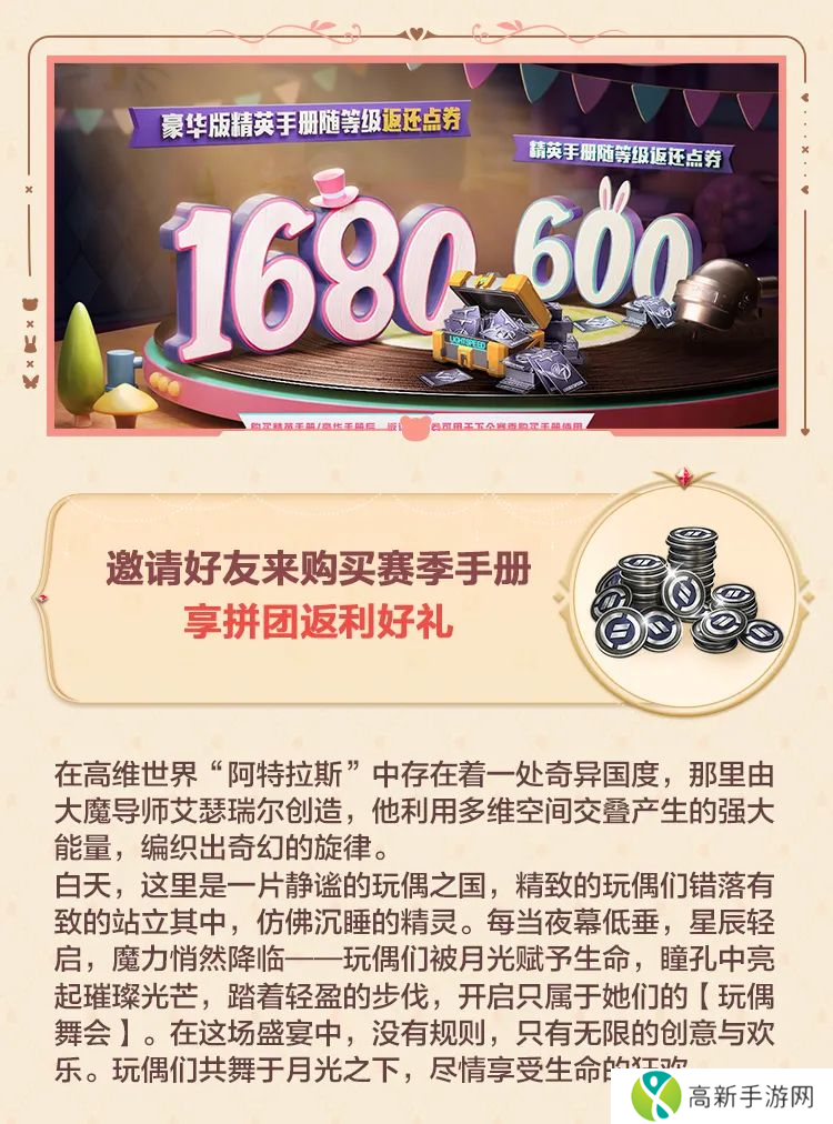 已知SS29赛季手册将包含【玩偶舞会】系列套装,该系列皮肤于9月24日5点05分上线。该系列皮肤以玩偶舞会为主题,设计可爱且充满节日氛围。