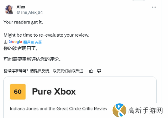 很显然,这是又一起游戏媒体和玩家认知割裂的案例。有玩家表示:希望PureXbox能重新评估游戏。