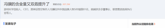 这一消息引发了广大玩家们的热烈讨论,截止至发稿时,话题“冯骥的含金量又双叒提升了”登上贴吧热议榜第3位。