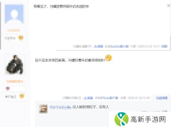 此外还有玩家玩梗:“就是故意排的,我看到冯骥提着两箱牛奶去选的号!”