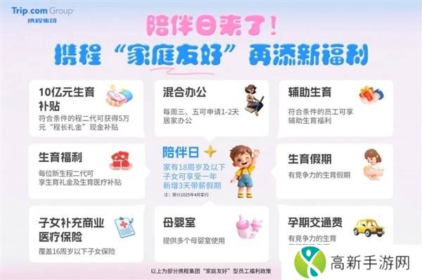 携程集团一直以来都是员工关怀的先行者,早在国内率先实施了混合办公模式,并投入巨额资金用于生育补贴政策。截至2024年底,已有近千名符合条件的携程员工领取了5万元的“程长礼金”,用于支持新生儿的成长与教育。