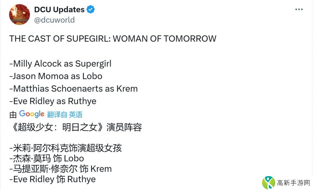 《超女:明日之女》将于2025年1月13日开拍,米莉·阿尔柯克饰演超女,马提亚斯·修奈尔饰演反派Krem,克雷格·吉勒斯佩(《黑白魔女库伊拉》《我,花样女王》)执导,已定档2026年6月26日北美上映。