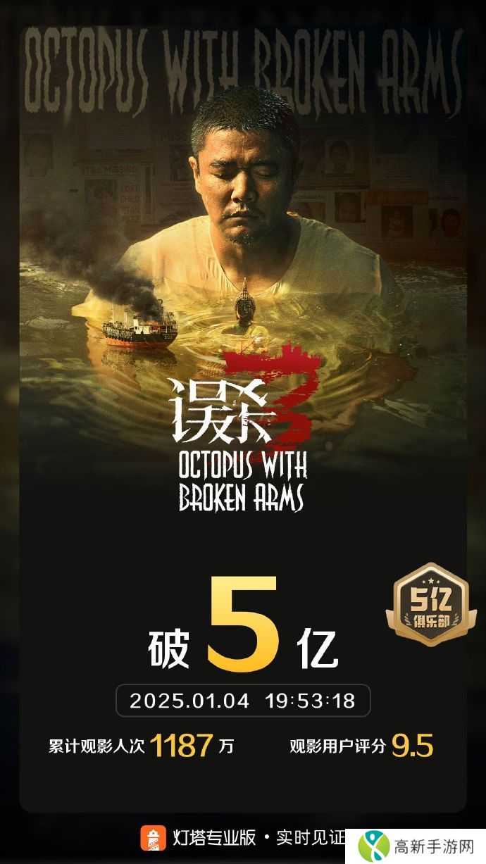 据灯塔专业版实时数据,截至1月4日19时53分,电影《误杀3》上映8天,总票房破5亿。
