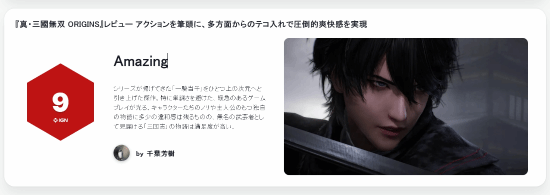 IGN日本发布了对《真·三国无双 起源》的评测文章,给出了9分的高评价。
