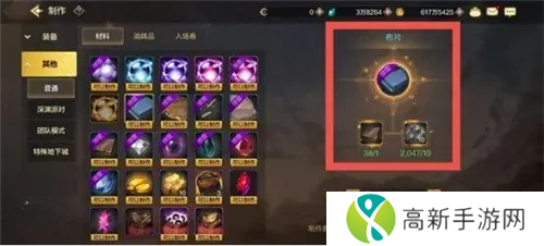 很多普通材料的制作是相互关系,比如我需要布片,那么可以使用铁片和少量的无色小晶体和金币来转换成布片材料,同理,其他材料都可以进行相互转换。