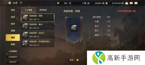 公会属性增益相比较魔力强化的材料消耗,会比较好达成属性上限。通过短期时间的公会贡献币的积累,即可将四项属性强化至上限。