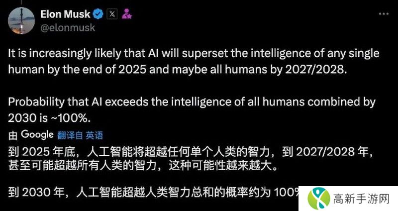 12月26日消息,埃隆·马斯克最近在社交媒体上发表了关于人工智能(AI)未来的大胆预言。