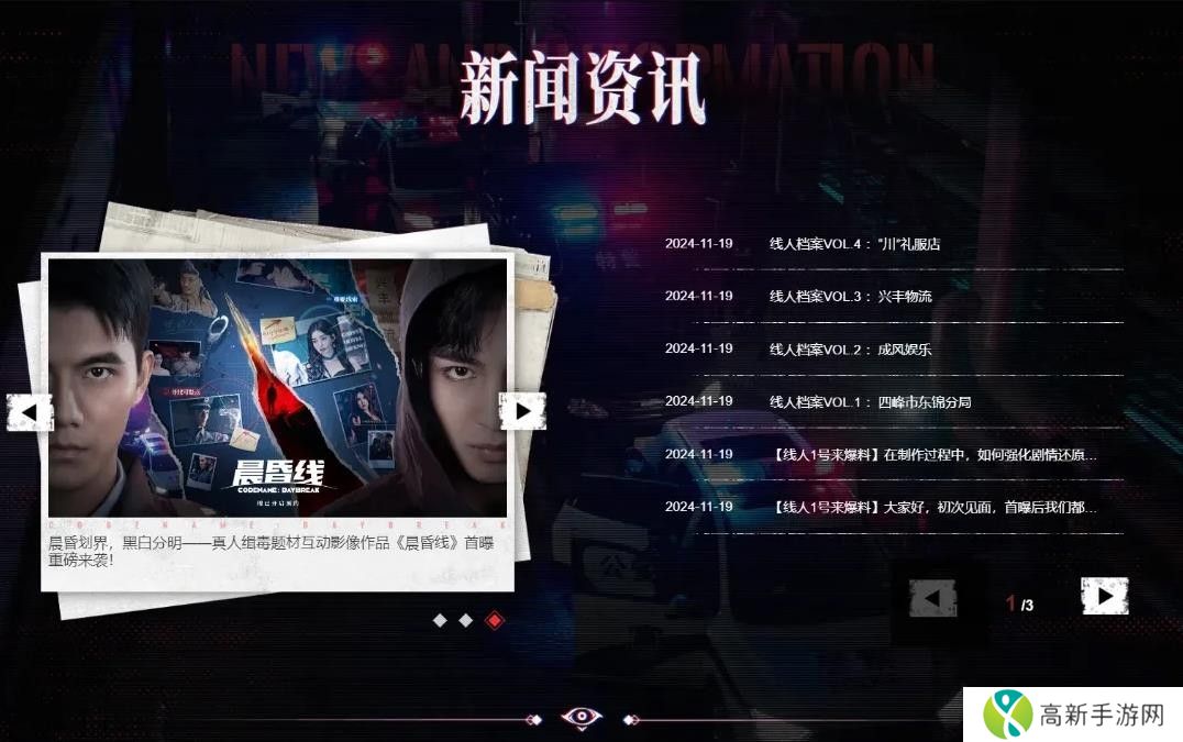 晨昏一线,善恶殊途!由儒意景秀和Enter Games联合打造的缉毒题材互动影像作品《晨昏线》,官网终于上线啦!在官网首页可以很方便地前往各大社区官方账号,方便获取后续的游戏动态。也全新开发了功能区,提供线人们更全面的信息。