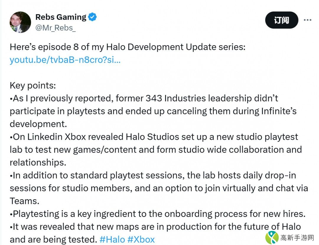 -在领英上,Xbox透露Halo Studios成立了一个新的游戏测试实验室,以测试新游戏/内容,并形成工作室范围内的合作和关系