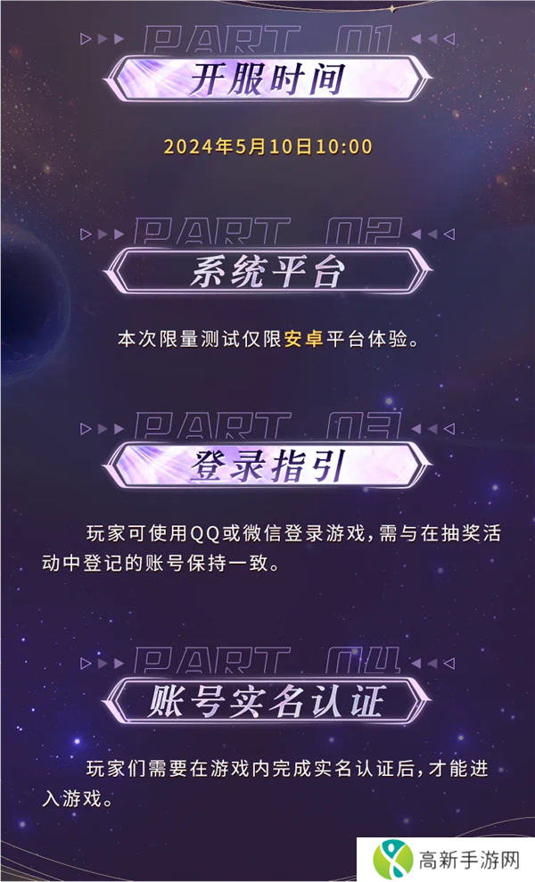 《星之破晓》在2024年5月10日10:00开启一轮先遣不删档测试。