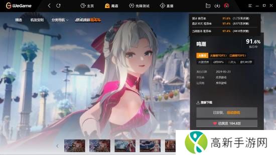 腾讯WeGame商店弹窗显示,开放世界动作二游《鸣潮》的关注数已突破一百万,截至发稿前的关注数为104.8万。