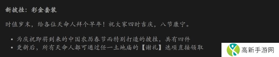 ·庆祝即将到来的中国农历春节而特别打造的披挂,共有四件