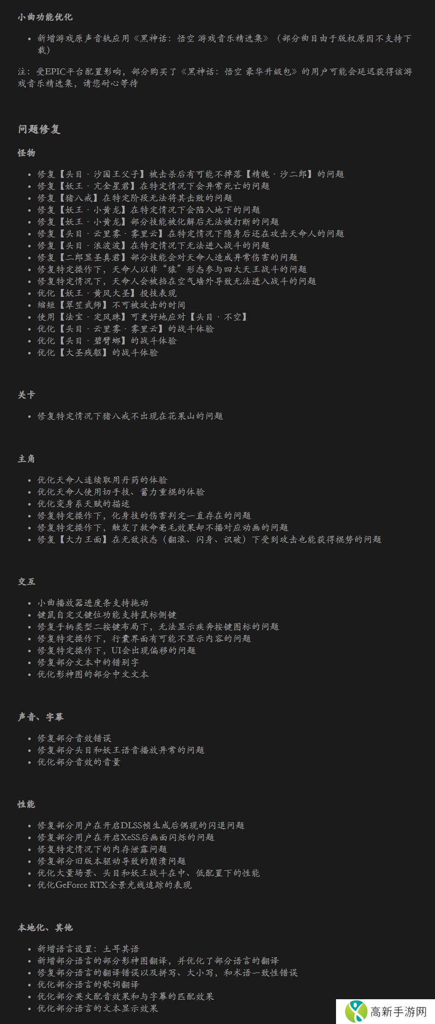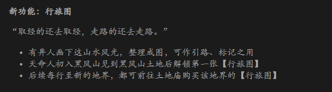《黑神话:悟空》发布最新公告,将更新「Boss 挑战模式」、「行旅图」功能和全新披挂「彩金套装」等!新内容现已上线Epic平台,其它平台亦将陆续更新。以下是本次更新的主要内容以及具体内容,请点击大图查