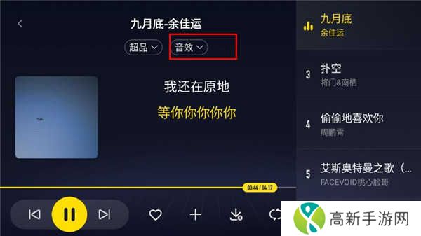 1、在酷我音乐车机版播放页面,点击上方中间的音效