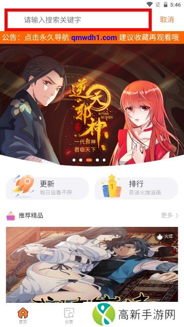 奇漫屋漫画下拉式古风漫画使用方法1、在本站下载安装奇漫屋漫画下拉式古风漫画,点击书城中的输入框;