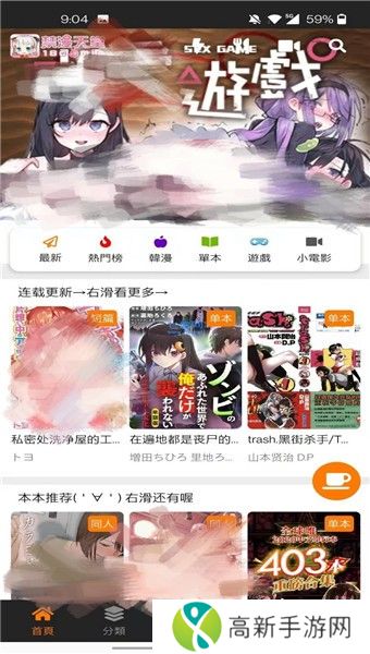 2、里面的漫画种类非常齐全丰富,用户可以根据种类选择自己喜欢看的漫画,或者也可以直接搜索名字来查找。