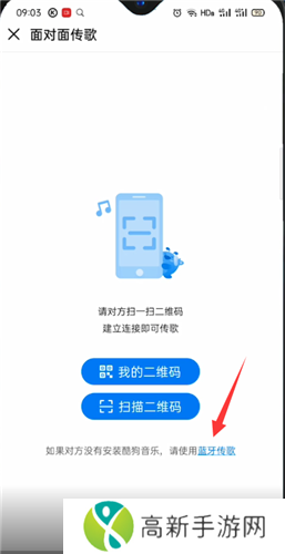 4、如果对方没有安装酷狗音乐,请使用蓝牙传歌,