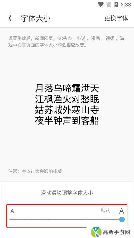 4、进入“字体大小”,滑动滑块可以调字体的大小。