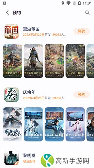 5、点击首页中的预约,即可查看即将发布的各种首发游戏。