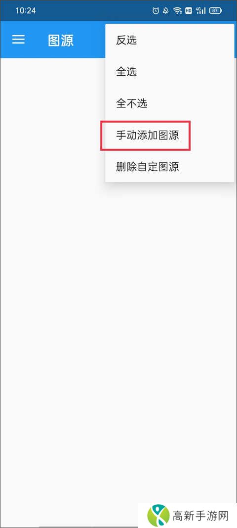 3、这里会显示所有的图源网址,点击右上角的三点图标并点击手动添加图源。