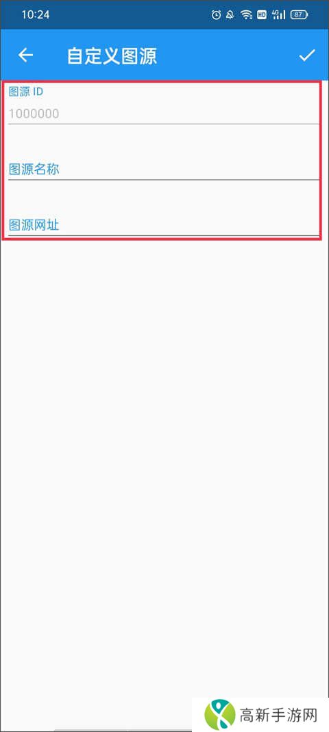 4、输入图源ID、图源名称、图源名称以及图源网址,最后点击右上角的对钩。