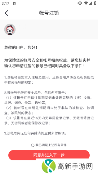 4、之后根据官方引导流程操作,即可注销网易大神账号