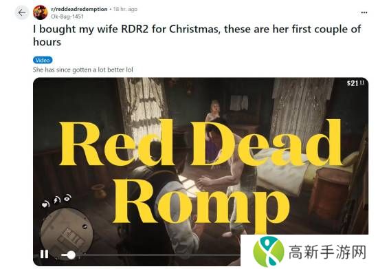 国外玩家Ok-Bug-1451在Reddit发帖称,自己在圣诞节给老婆送了份《荒野大镖客:救赎2》作为礼物,并分享了她的游玩视频。